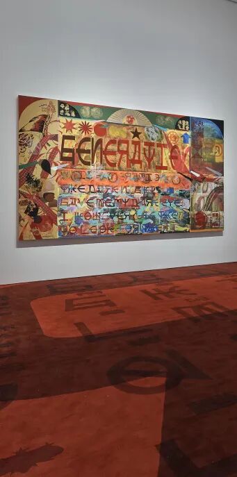 她的创作审视我们主观地赋予意义与价值的方式,并直面数字信息时代的种种矛盾。冈布茨、莫比乌斯环、地图投影等电子化和网络化的晦涩符号常见于艺术家的创作中,呈现出富有逻辑、抽象而冷静的画面。多元的视觉符号及图像碎片细密交织,而这些元素往往来自庞杂的语境。符号元素在张月薇的作品中相互碰撞、波动、交错、失衡,与画作背景中的重复性、确定感形成鲜明的对比。