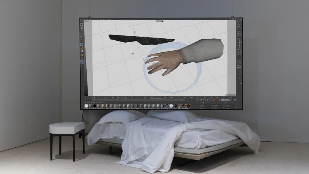 王梓全则呈现了对互联网及虚拟世界独特的观察和理解,探索虚拟和现实的阈值,并⽤三维软件模仿真实世界中的荒谬。