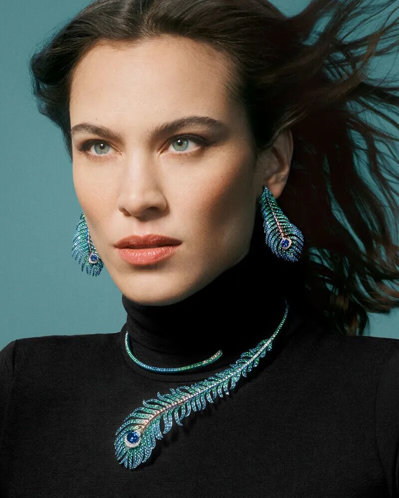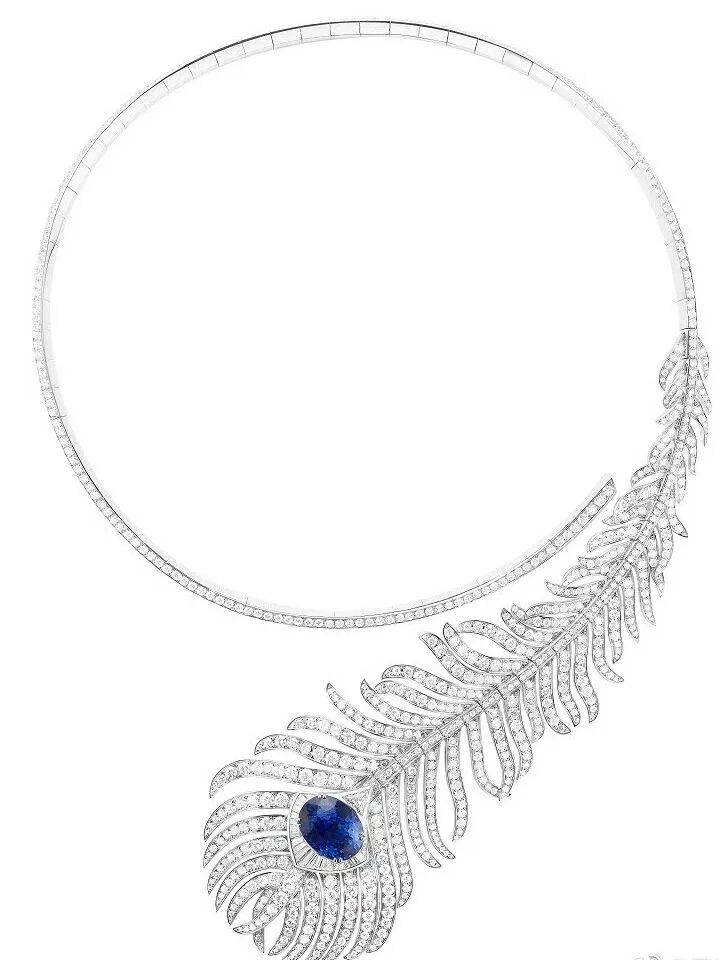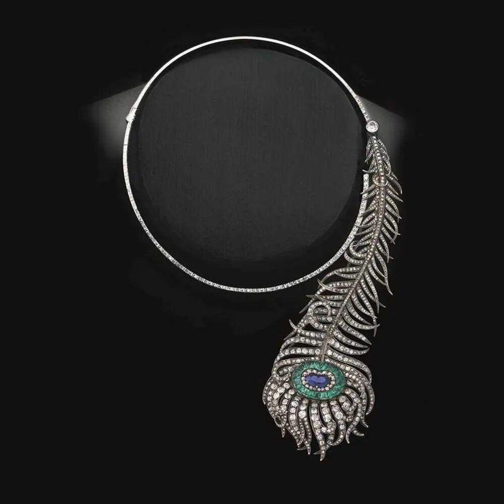 而孔雀羽毛作为宝诗龙高级珠宝中的设计元素也历史相当悠久,可以追溯至1883年,起因是一位俄国皇室成员向宝诗龙定制一条以孔雀羽毛为灵感的问号项链,自此以华丽、静谧的孔雀羽毛为设计元素的第一款Plume de Paon孔雀羽毛问号项链出现在了高级珠宝的历史舞台上。