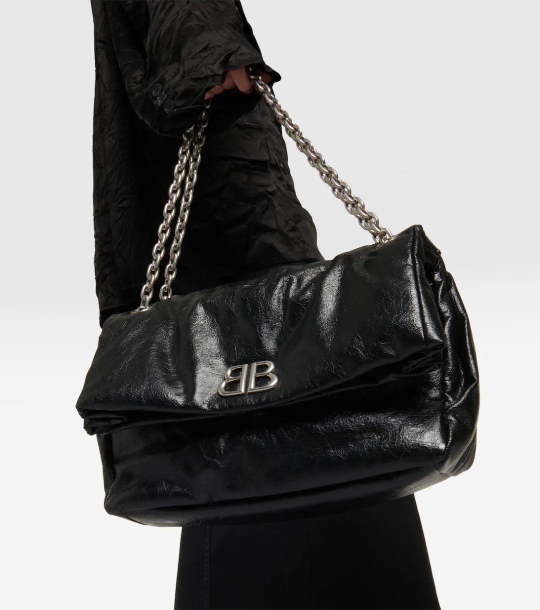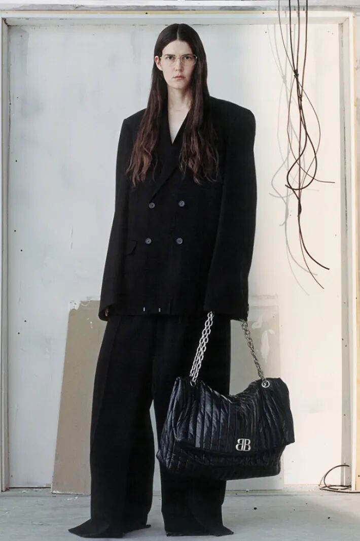 一向跟街头、暗黑挂钩的Balenciaga,当然也少不了酷帅的大包。这款Monaco仿佛是经典翻盖包的放大款,冷峻的金属链条搭配柔软的巨大包身,一刚一柔的反差感非常有趣。