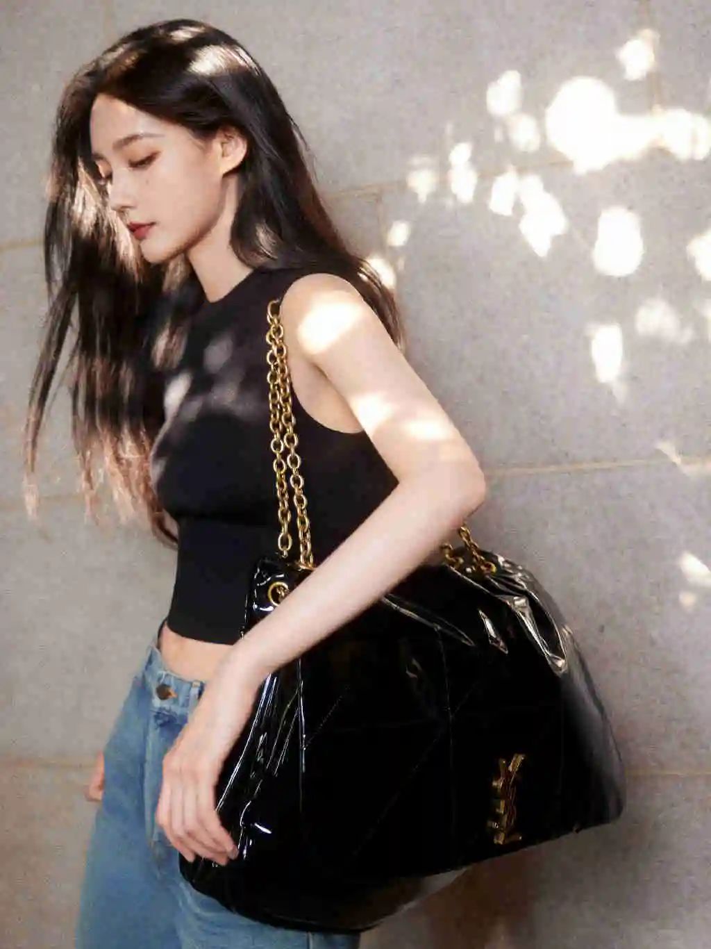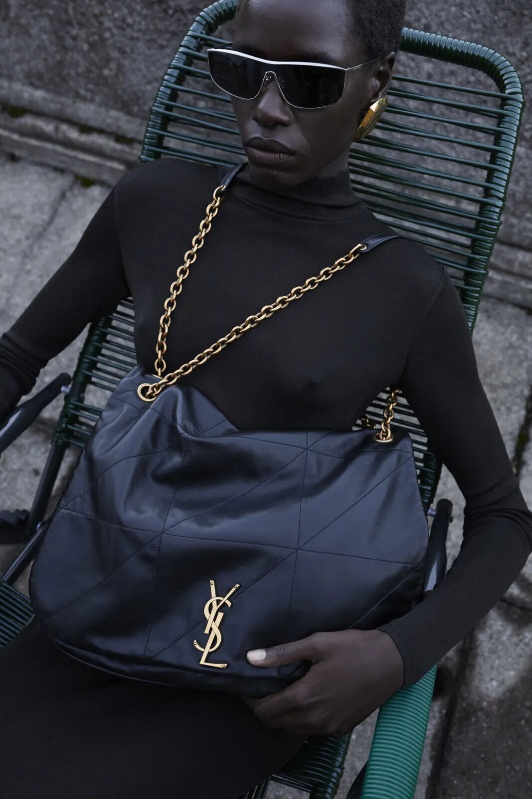 手袋搭配别致的三角几何压纹设计,以及品牌具有代表性的“YSL”logo,让整体时髦度满分。比较特别的是背带可以调整成双链带的模式,以跨肩双链的方式背就变成了超大号腋下包。