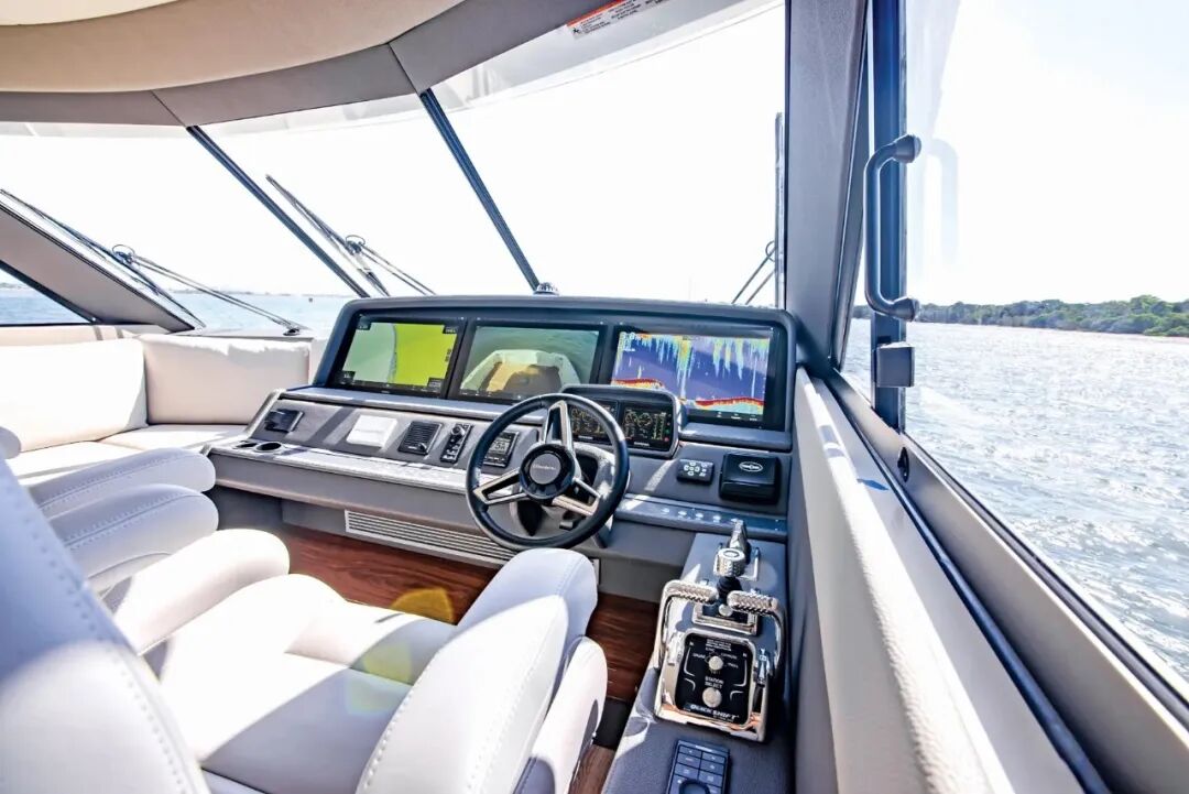 作为一艘专业的钓鱼艇,REGAL 38SAV配备了许多专业的设备和细节,让你的钓鱼体验更加顺畅和愉快。硬顶上配有加强的外支架,并有一排鱼竿支筒安装在船尾横梁上,方便存放和取用鱼竿。双绝缘储物柜可以让你钓上的鱼保持鲜活,或者存放冰块和饮料。驾驶台配有两个16英寸的Garmin显示器,可以显示你的航行信息和鱼群分布,让你更容易找到理想的钓点。