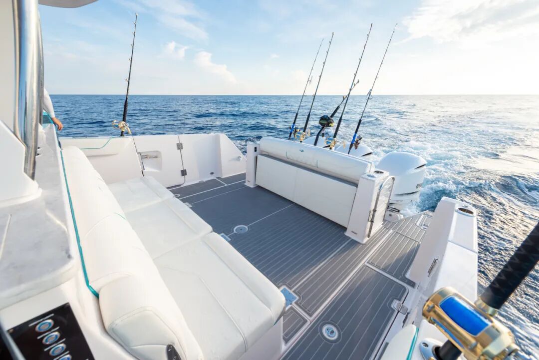 C-Cat 40双体动力钓鱼艇的安全性能非常出色,无论你在海上遇到什么情况,都可以放心航行。这艘船的两个船头都配备了“防撞箱”,可以有效地吸收和分散撞击的力量,防止水进入船内,保护船体的完整性。这艘船还有四个密封舱,即使在极端情况下也可以保持浮力,让船不会轻易沉没!当然,作为一款专为钓鱼爱好者度身打造的双体动力钓鱼艇,C-Cat 40宽敞的甲板和船尾平台为热爱海钓的你提供了充足的且没有阻碍的垂钓区,船上还配备有多个鱼竿支筒,方便你存放和取用渔具。同时,船上配备的两个大型鱼缸也能让你钓上的鱼保持鲜活。
